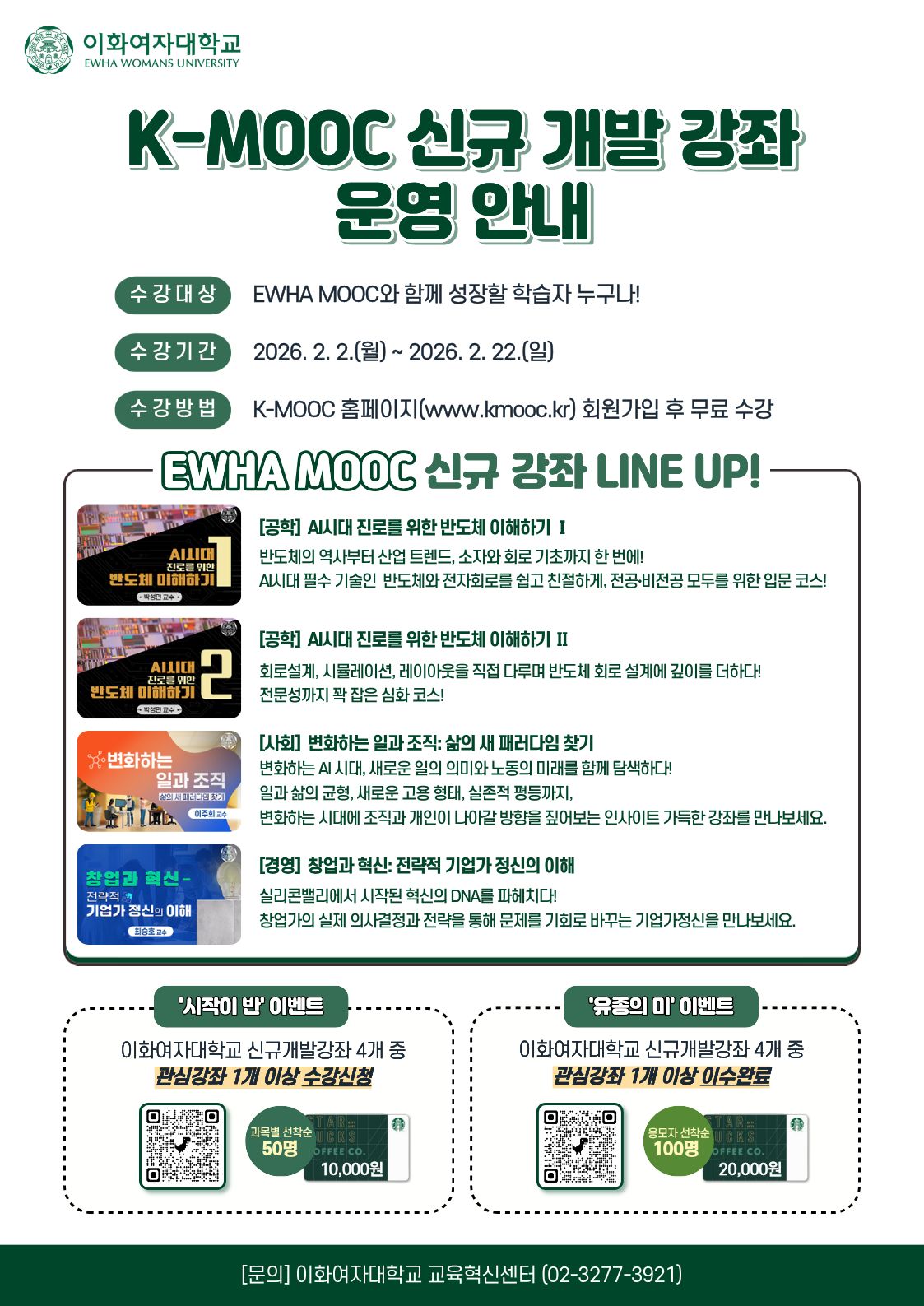 이화여자대학교 K-MOOC 신규 강좌 수강 및 이벤트 안내